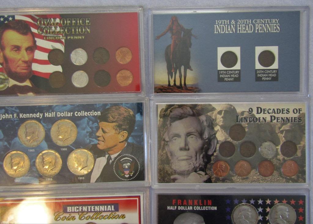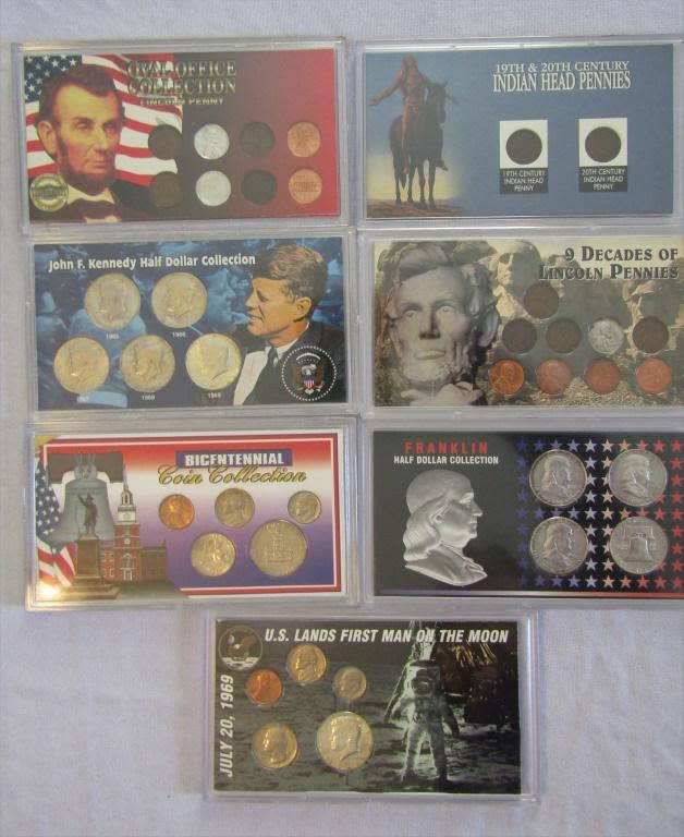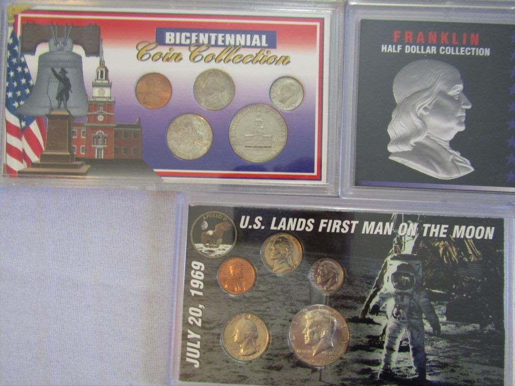FRANKLIN HALF DOLLAR COLLECTION (4); 9 DECADES of LINCOLN PENNIES; 19th & 20th CENTURY INDIAN HEAD PENNIES; U.S. LAND FIRST MAN ON THE MOON 1969 SET; 1976 BICENTENNIAL COIN COLLECTION; JOHN F. KENNEDY HALF DOLLAR