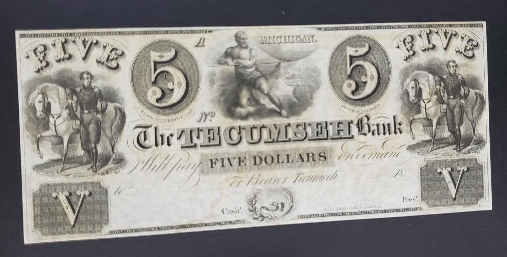OBSOLETE FIVE DOLLAR NOTE TECUMSEH MICHIGAN