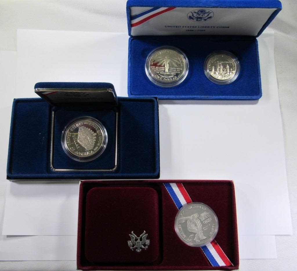 1983-S OLYMPIC SILVER DOLLAR; 1986 2 COIN PROOF STATUE OF LIBERTY SET. Live Online Auctions Weekly!