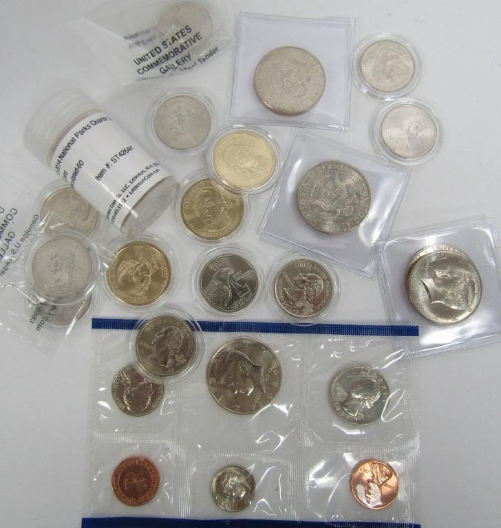 plus BU LOT of 3-PRESIDENT DOLLARS; 10-STATE QTRS, 23-NATL PARK QTRS & 1989 P U.S. MINT SET In cello