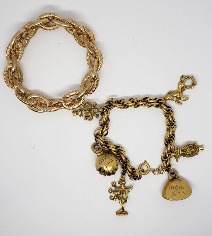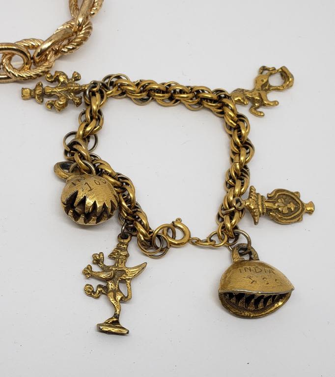 (6)INIDA CHARMS PLUS (1)GOLD TONED LINKED STRETCHY BRACELET