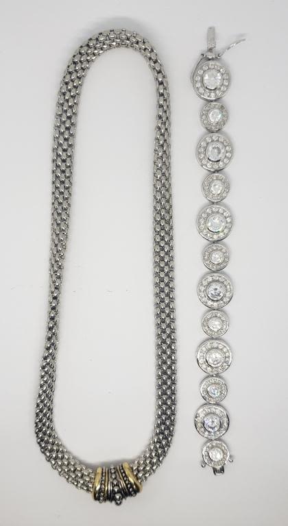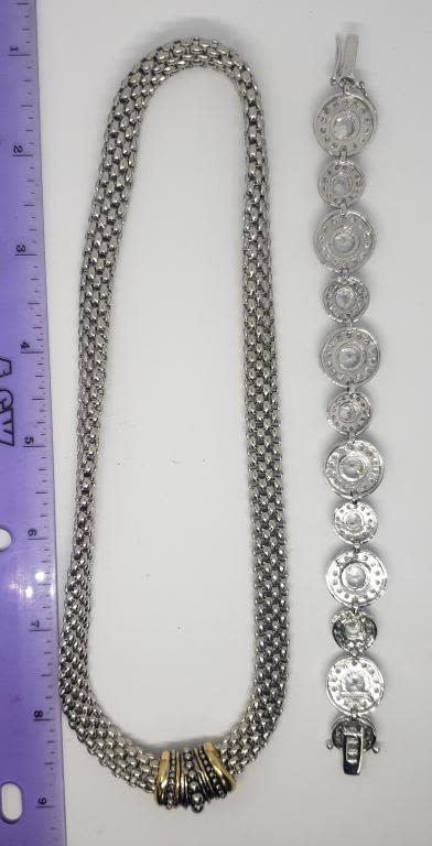 NECKLACE WITH MAGNETIC CLOSURE PLUS 7 INCH CIRCULAR RHINESTONE PANEL BRACELET