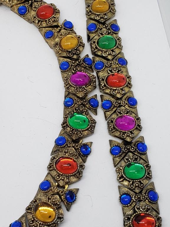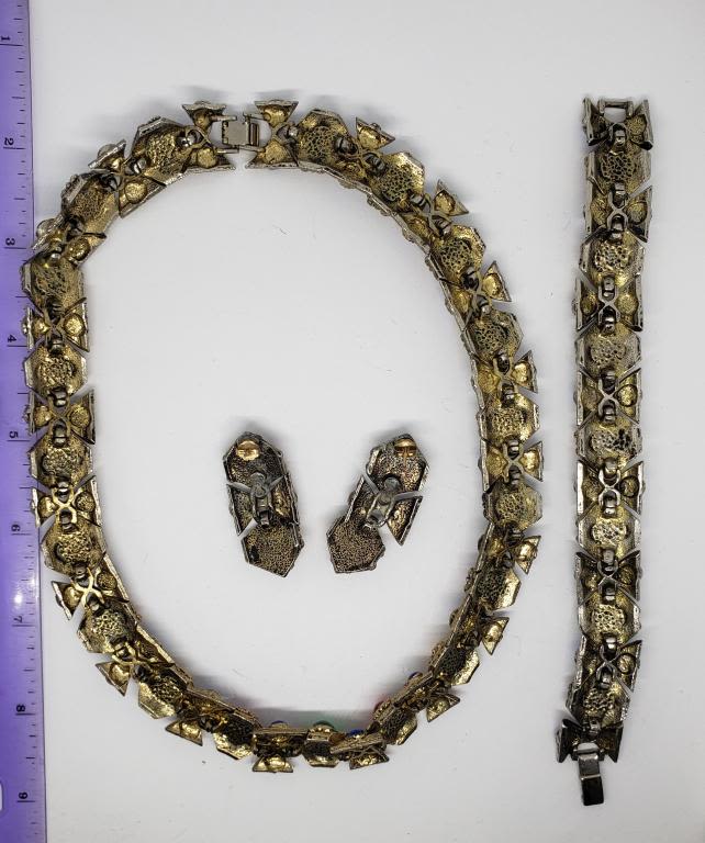 LUCITE STONES PLUS MATCHING BRACELET AND PIERCED EARRINGS-GOLD TONED