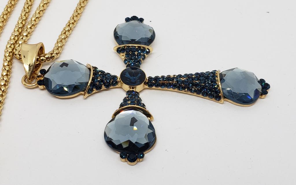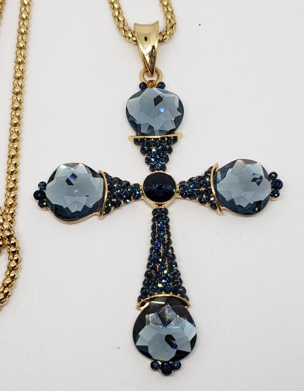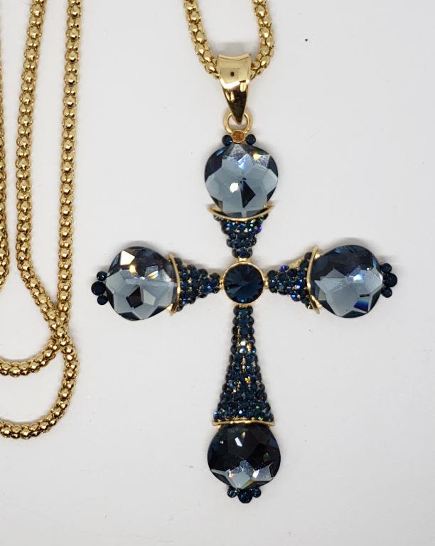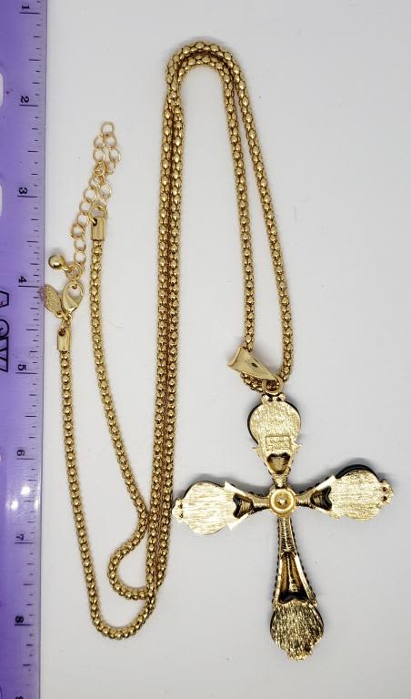 CROSS PENDANT-COMES WITH GOLD TONED CHAIN-LOOKS NEW!