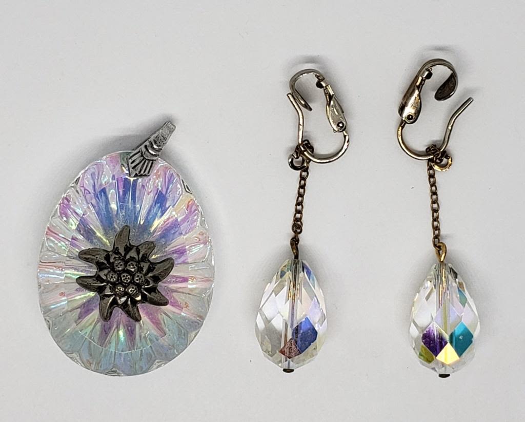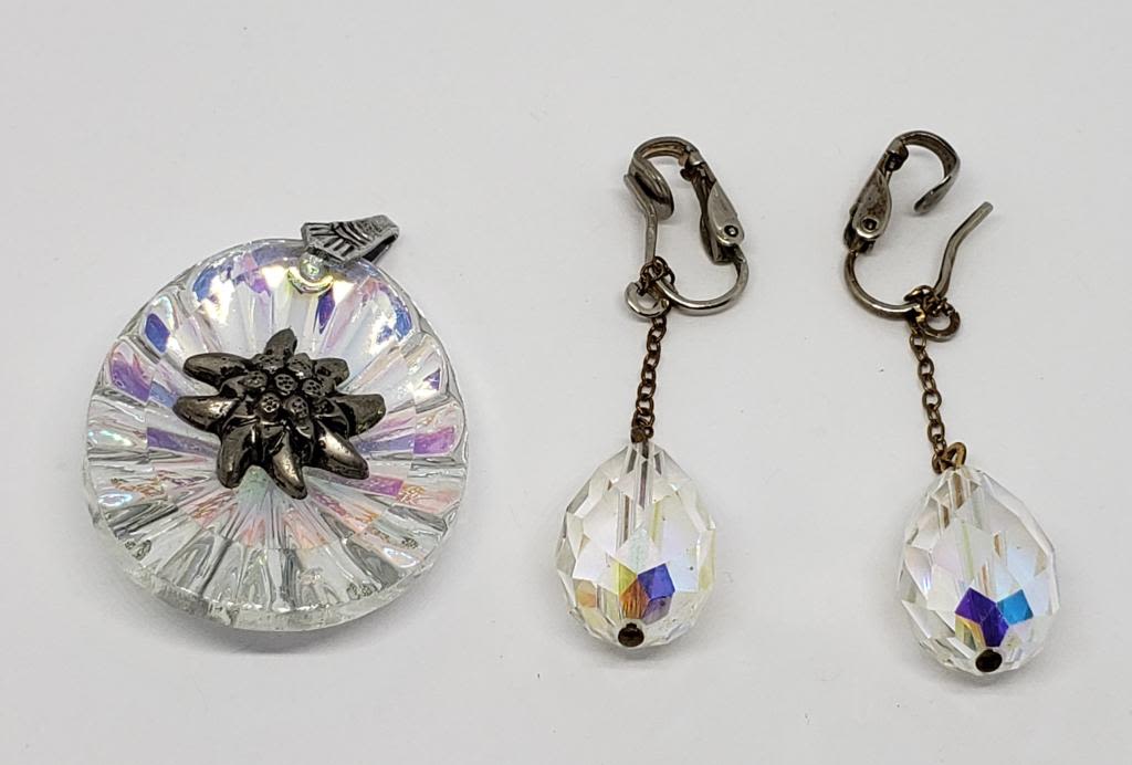 PENDANT WITH MATCHING PAIR OF CLIP ON DANGLY EARRINGS