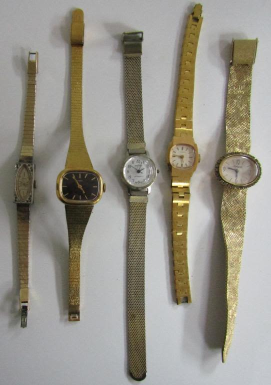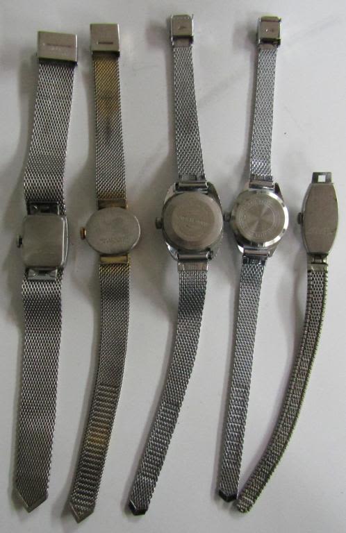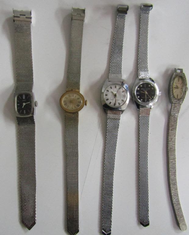Not tested as to working or not-most will need battery replacements-some for parts or repair-some may work-Ladies self winding watches – Pedre, (9)Timex, eseikor, (2)medanaimpex, lucertn