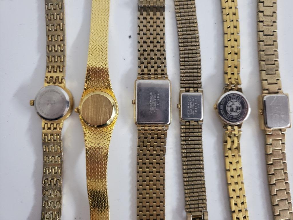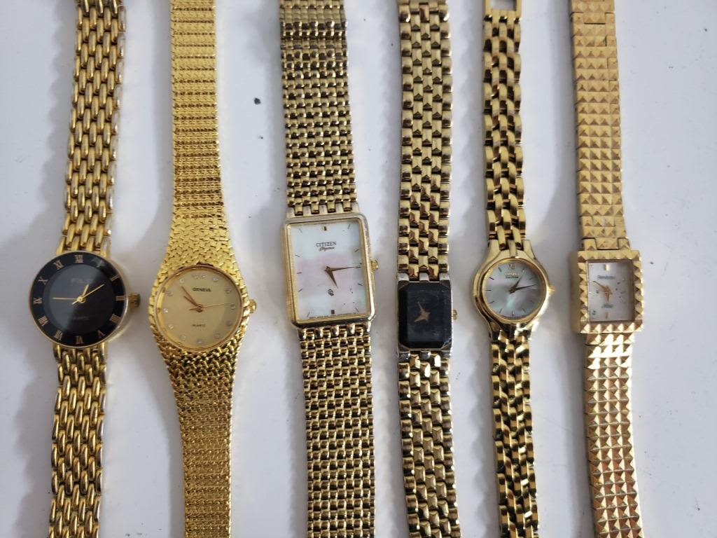 Not tested as to working or not-Most will need battery replacements-Some for parts or repair-Some may work-20 LADIES QUART WRIST WATCHES :PS DESIGN, (4)CITIZEN, FOLIO, TIMES SQUARE, CARRIAGE,