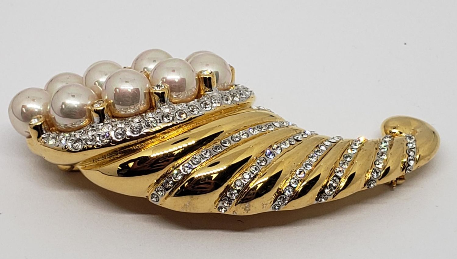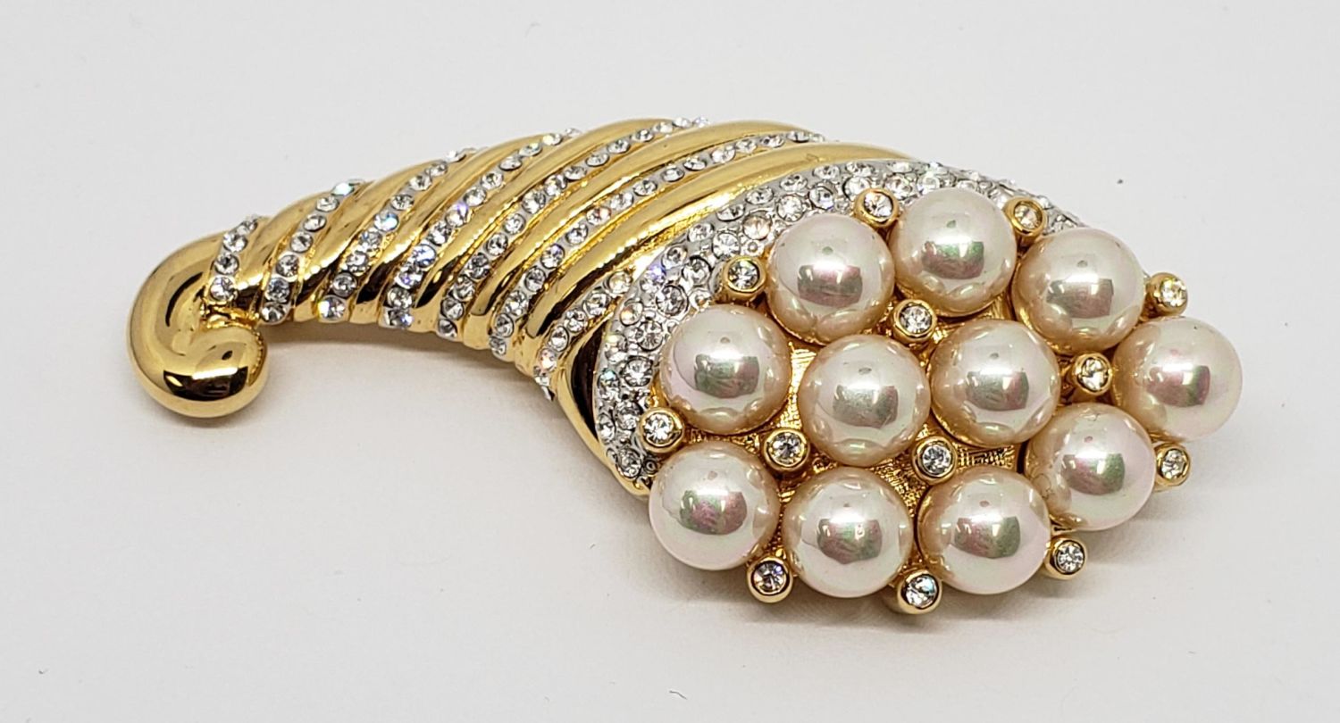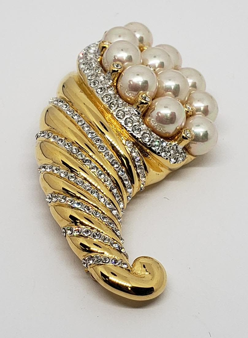 RHINSTONES CORNUCOPIA PIN BROOCH