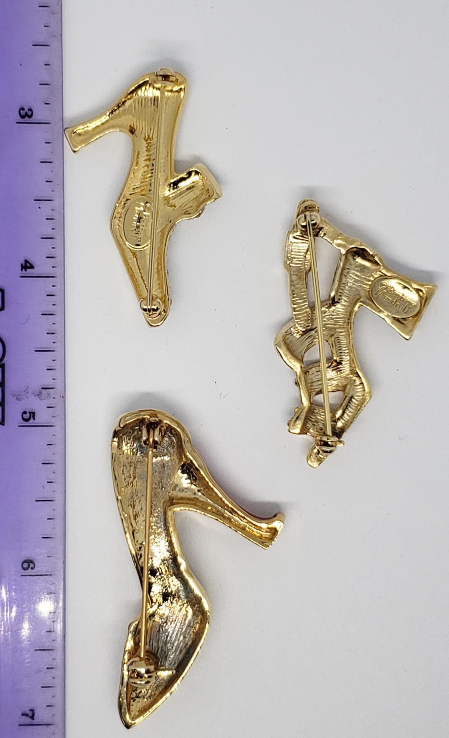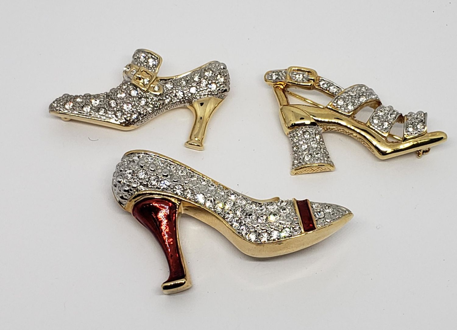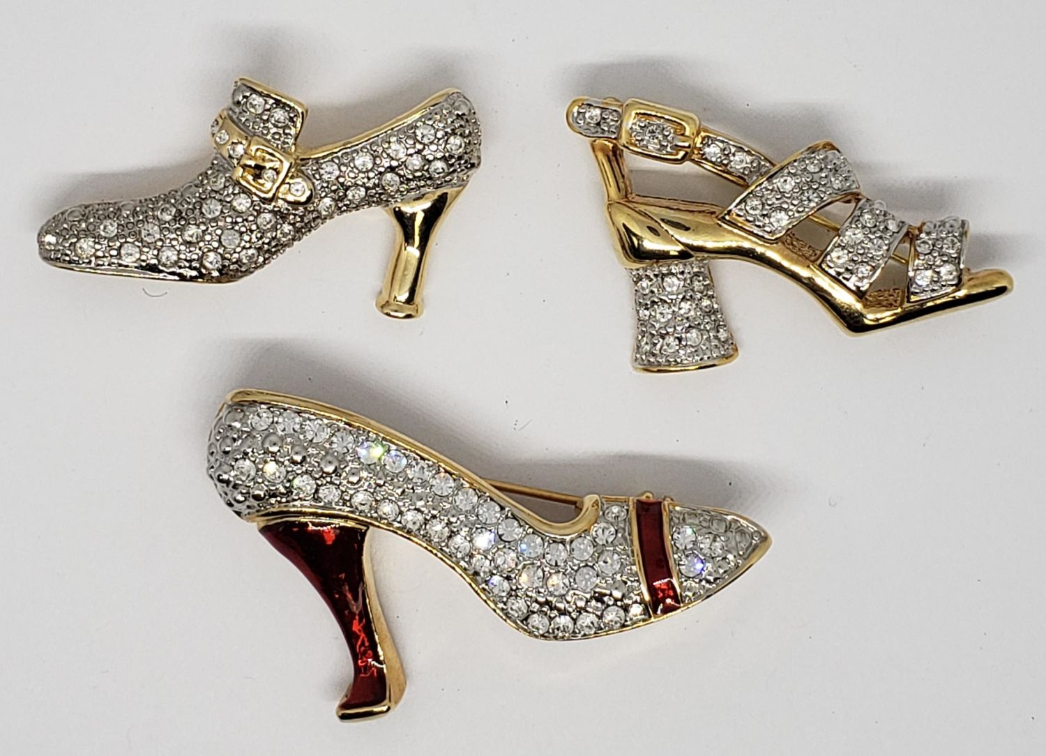 BROOCHES (2)MARKED BARBARA MANDRELL-(1)WITH RUBY RED ENAMEL