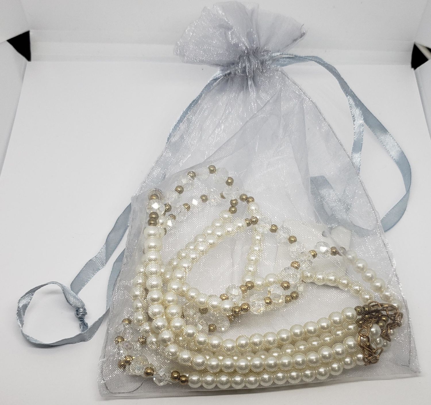 WITH CLEAR BEAD ACCENTS-COMES WITH BABY BLUE PULL STRING BAG