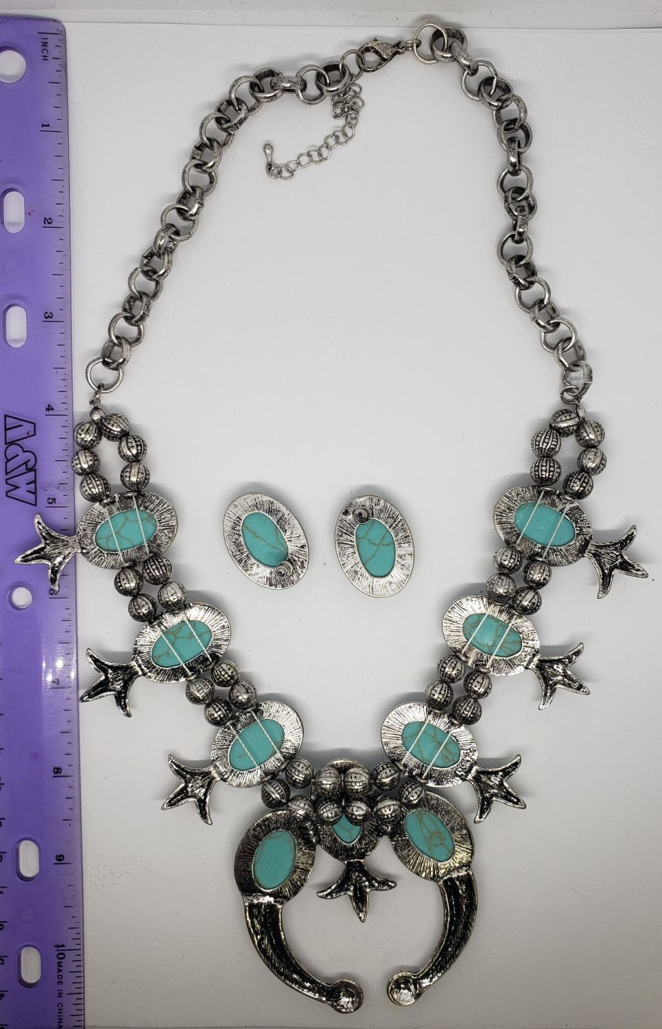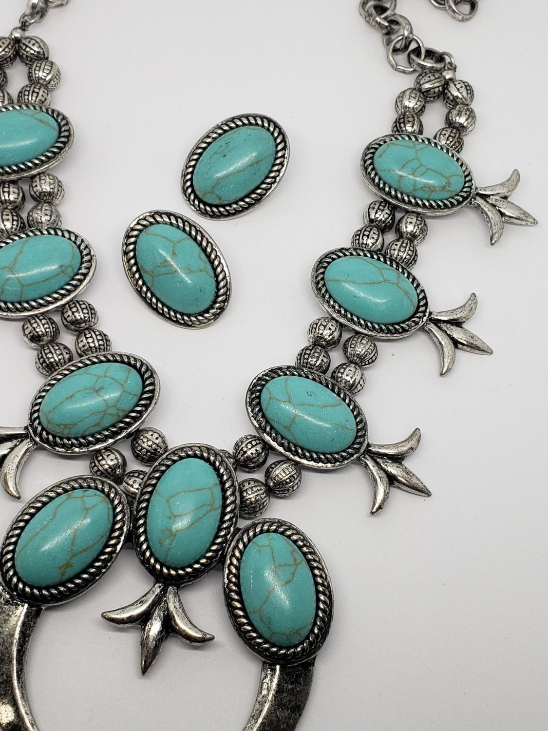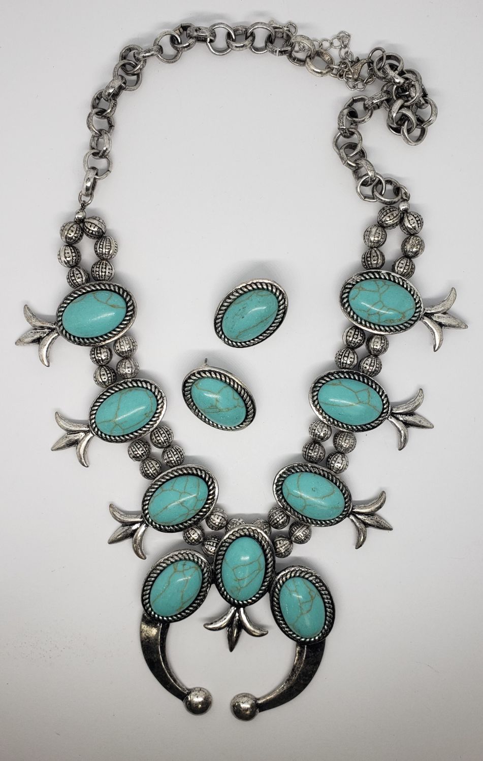 WITH FAUX TURQUOISE PLUS MATCHING PAIR OF PIERCED EARRINGS