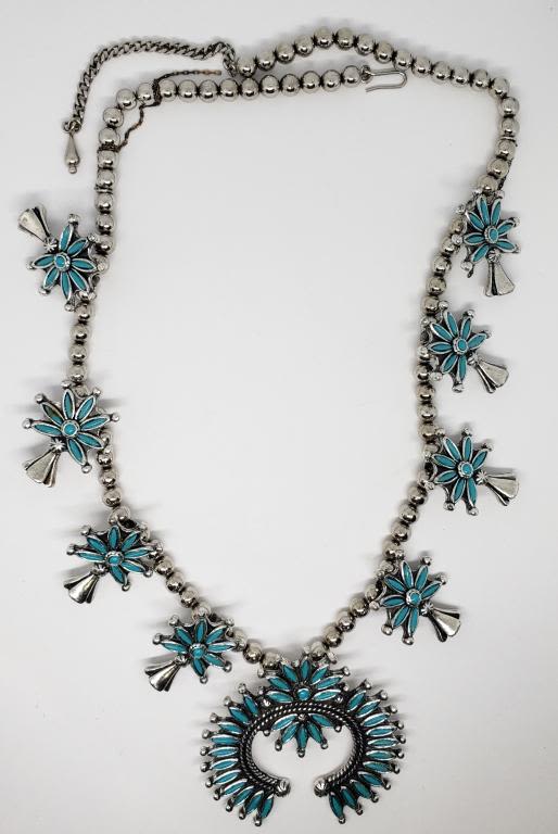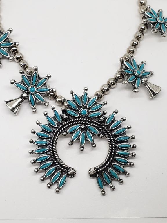 NECKLACE WITH TURQUOISE COLORED BEADED ACCENTS