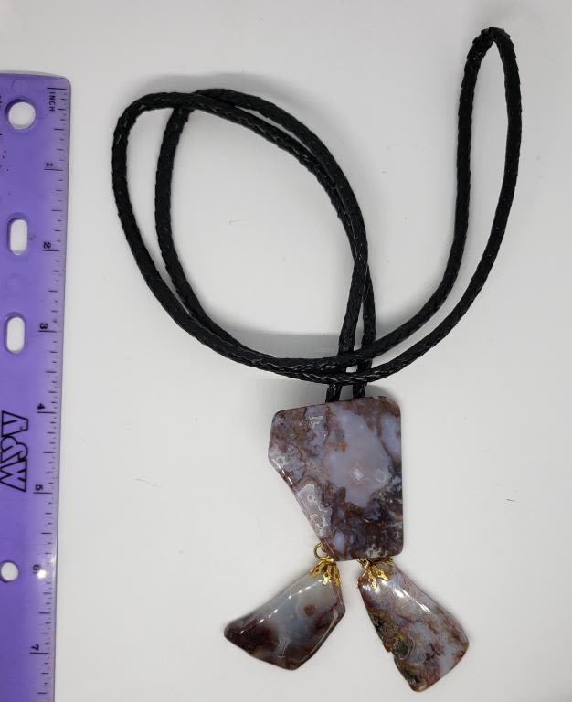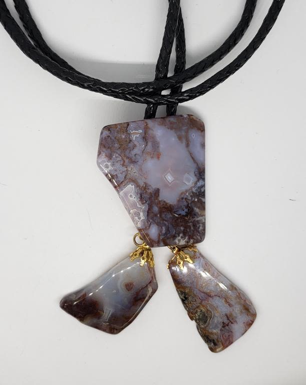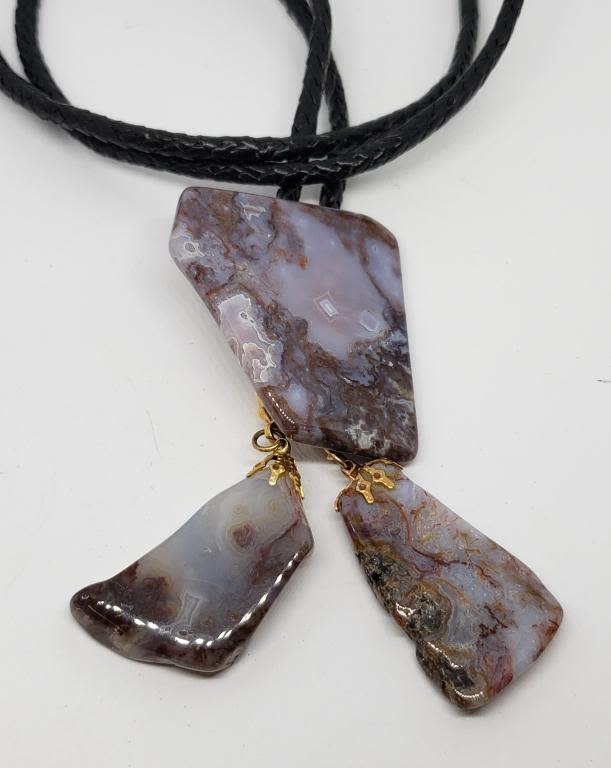POLISHED NATURAL STONE PENDANT AND TWO LARGE DANGLY CHARMS