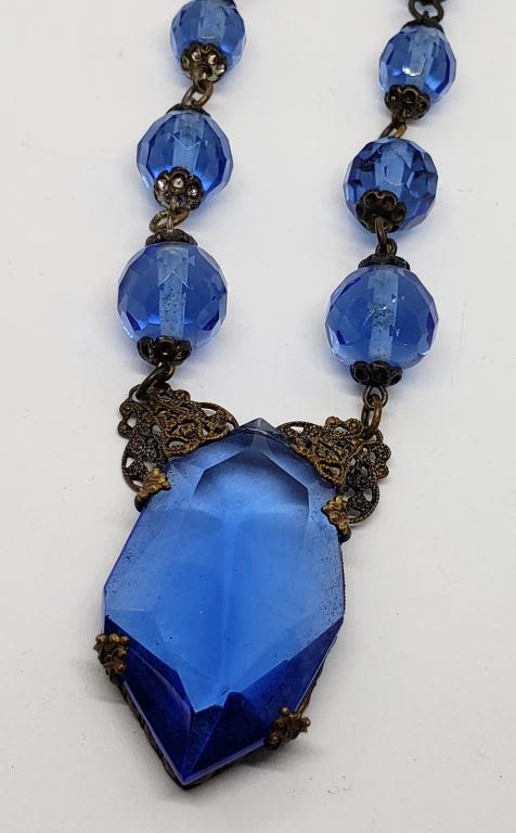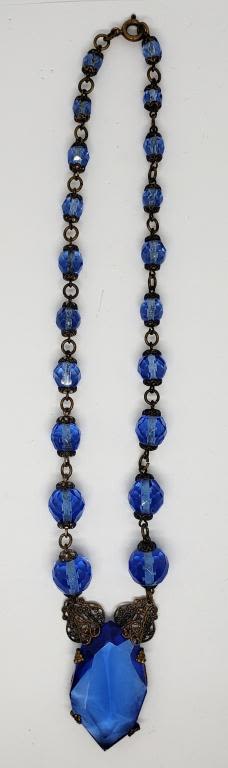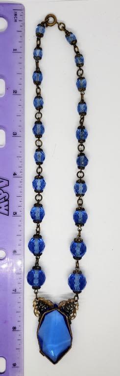 WITH LARGE NAVY BLUE RHINESTONE PENDANT