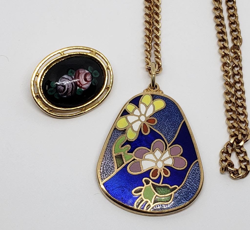 (1)SARAH COVENTRY FLOWER PENDANT & (1)ROSE ENAMEL PIN
