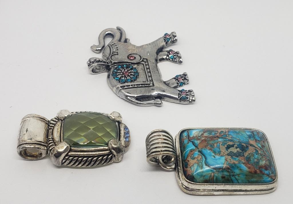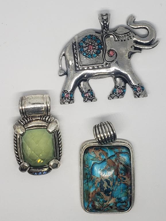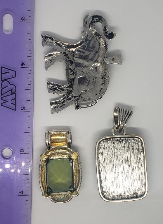 CENTER (1)ELEPHANT WITH BABY BLUE AND PINK RHINESTONES (1)GREEN CENTER STONE
