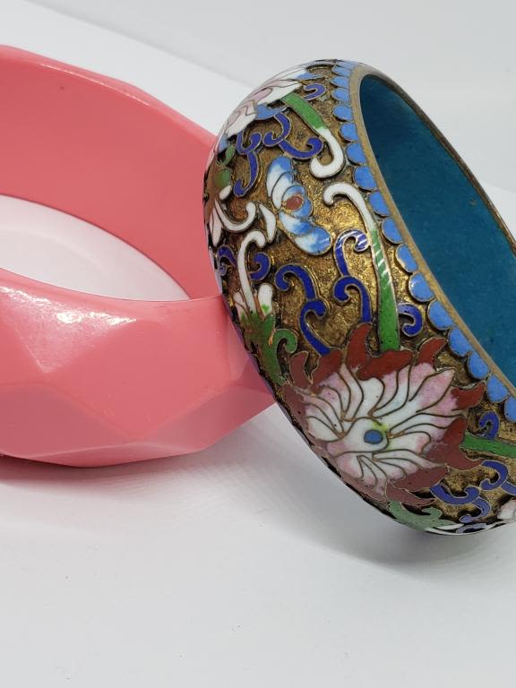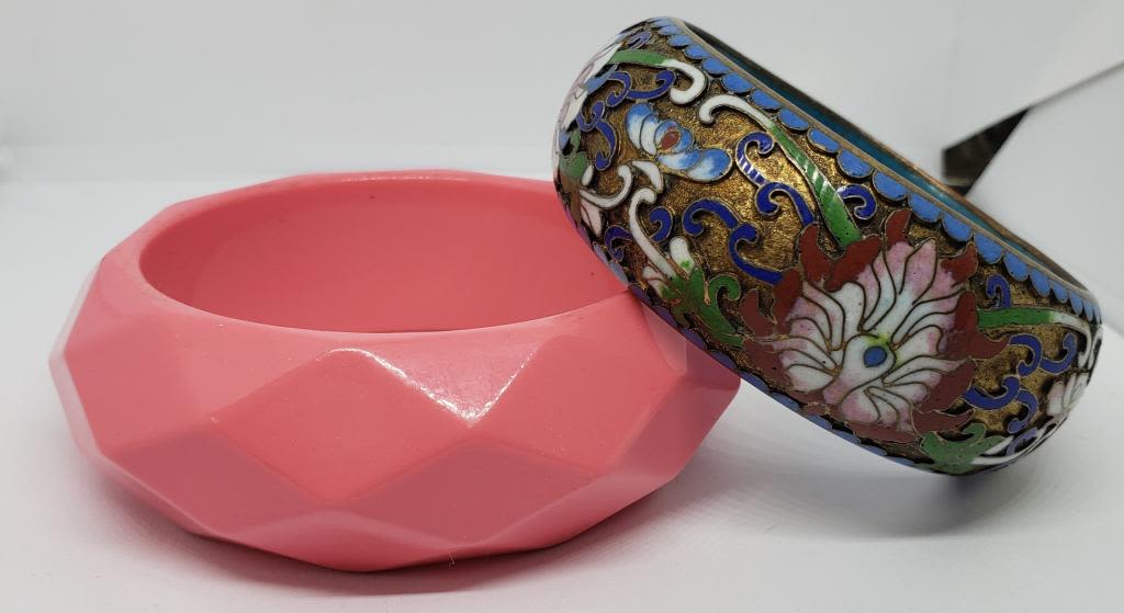 DESIGN PLUS HOT PINK LUCITE/BAKELIT BANGLES