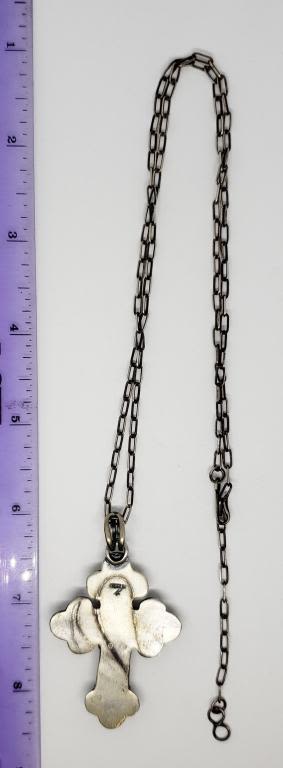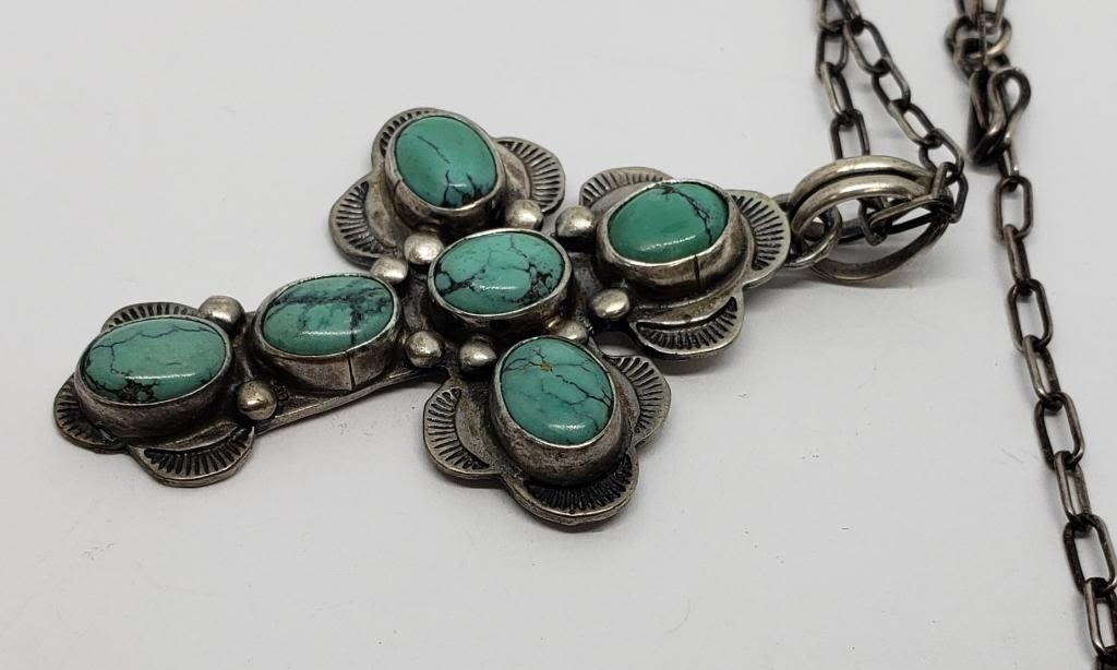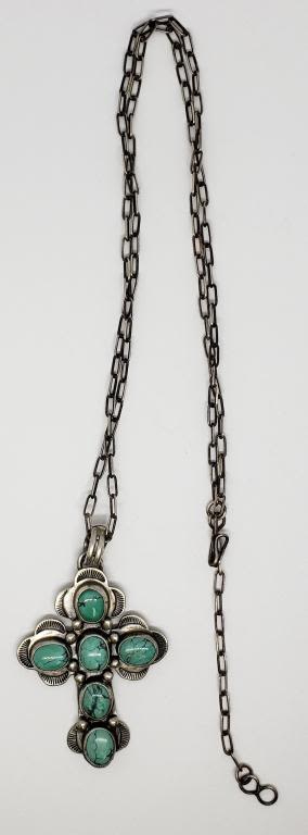 WITH GREEN TURQUOISE – OVER 2" LONG w/22" CHAIN (12.4 DWT)