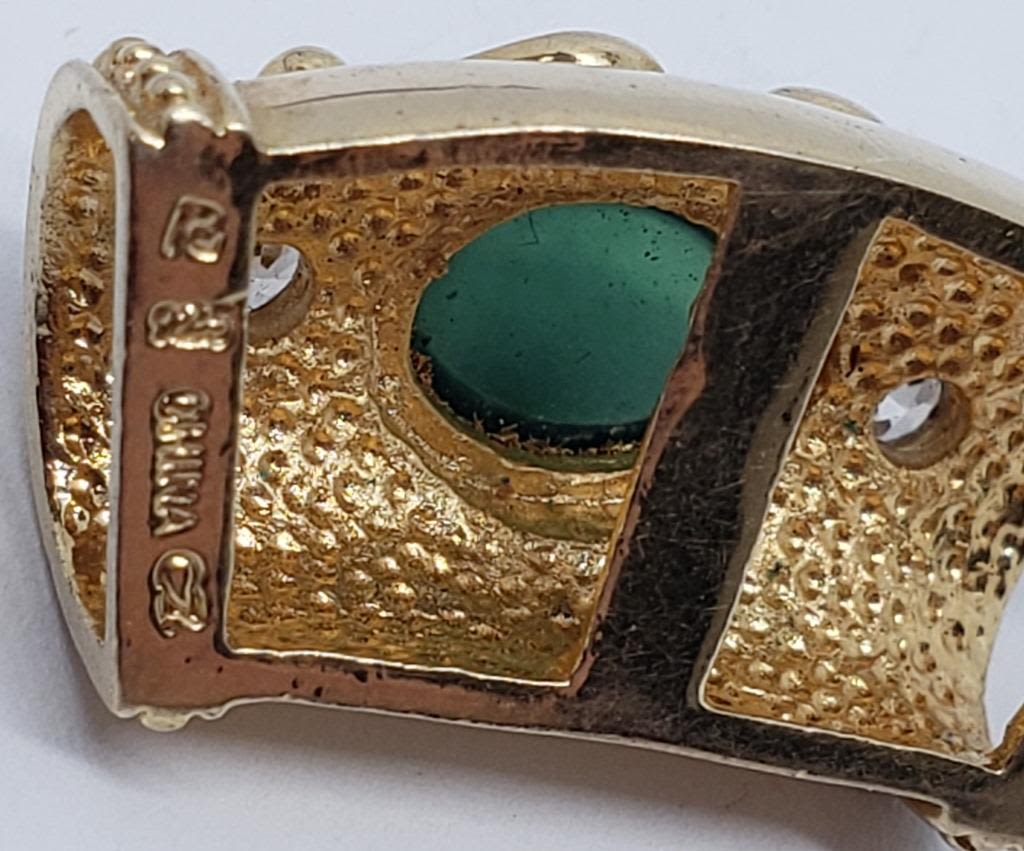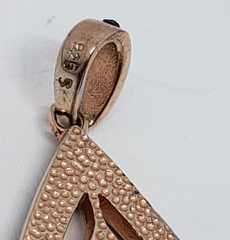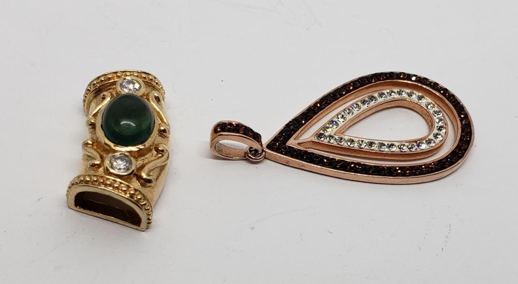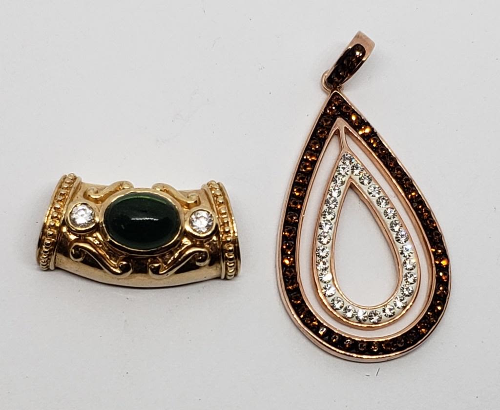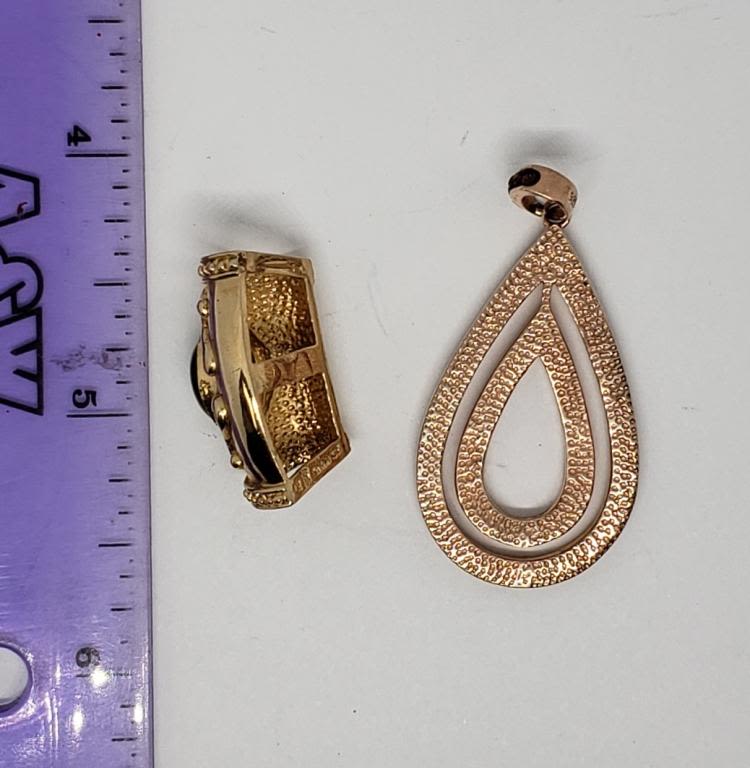 GOLD TONED SLIDE w/GREEN CENTER – COPPER TONE TEAR DROP (6.9 DWT)