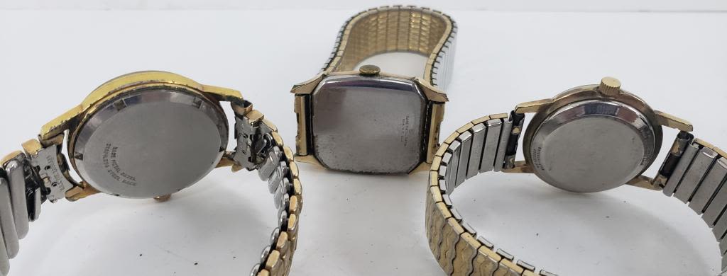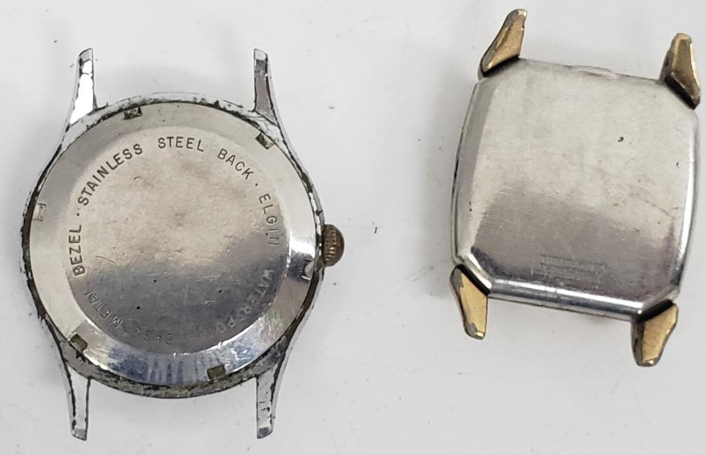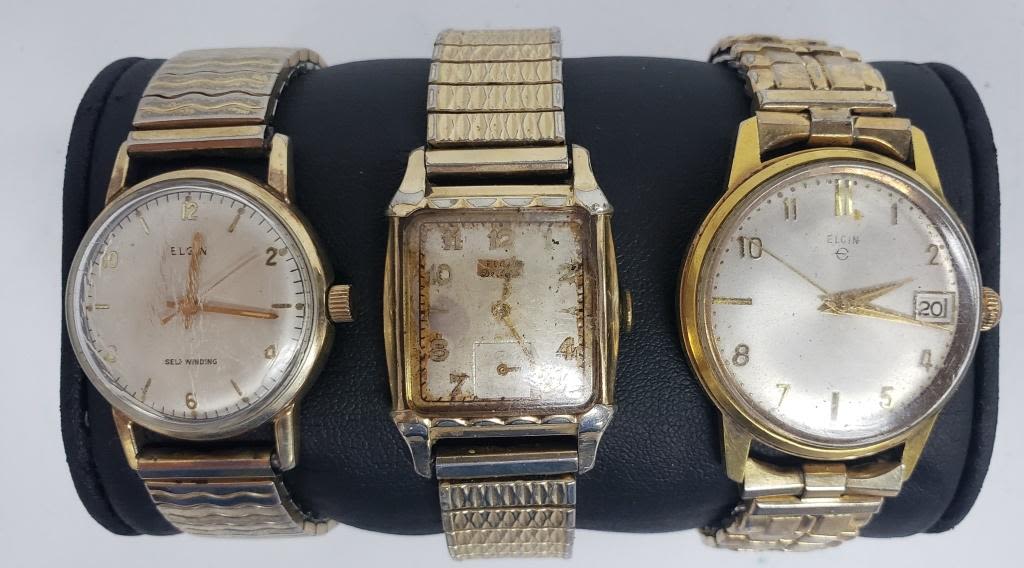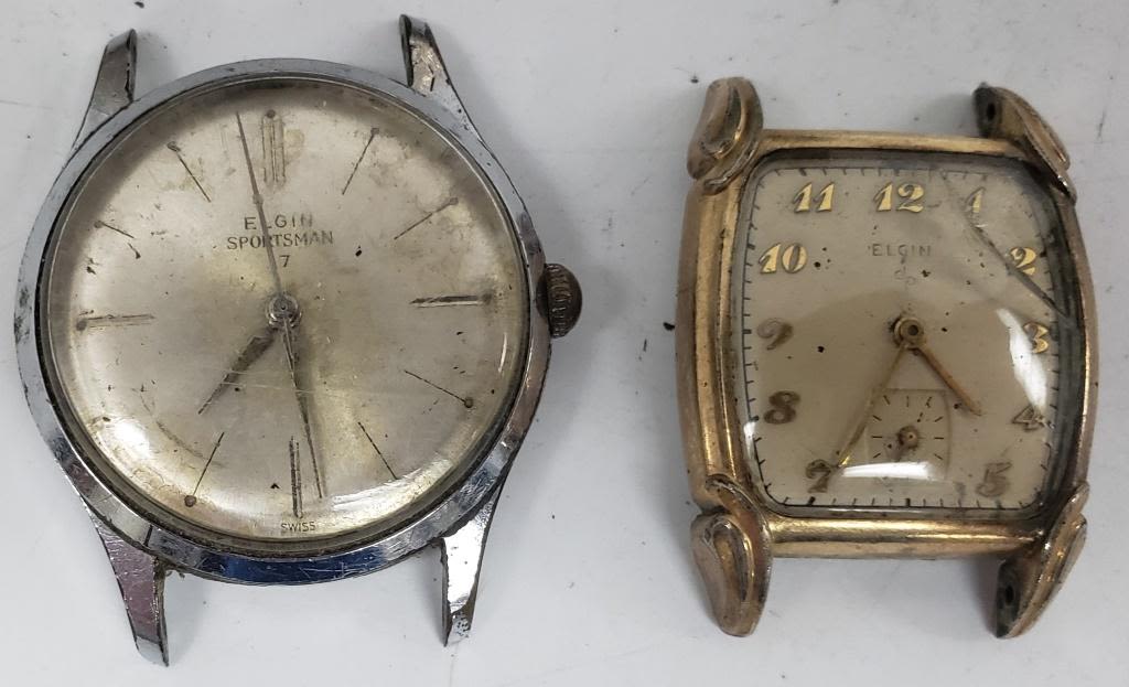 Not tested as to working or not-most will need battery replacements-some for parts or repair-some may work -5 Mens Mechanical Winding Watches-Elgin- 3 with stretch bands 2-just face