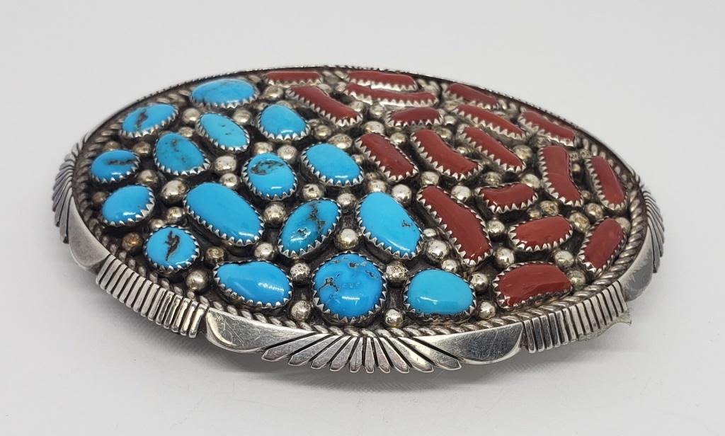 BEAUTIFUL TURQUOISE & CORAL DESIGN 3 1/2" x 3 1/4" (45.6 DWT)