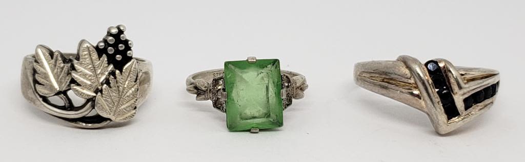 EDGES (1)LEAF DESIGN (1)WITH MULTIPLE NAVY BLUE COLORED STONES-VARIOUS SIZES 6-9-TOTAL 7.4 DWT
