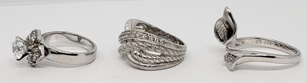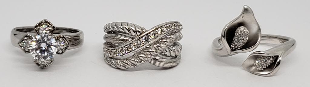 BAND WITH CLEAR STONES (1)CALLA LILLY (1)CROSS STYLE WITH LARGE CLEAR CENTER STONE-VARIOUS SIZES5.5-9-TOTAL 12.3 DWT