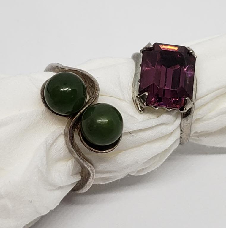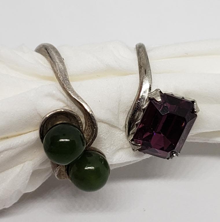 PURPLE STONE SIZE 3.5 & JADITE STERLING RING SIZE 7 ( 3.2 DWT)