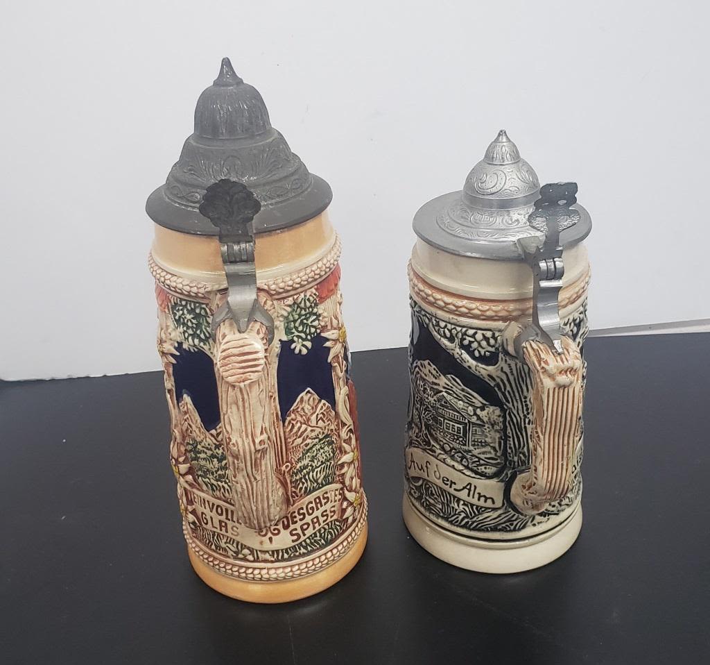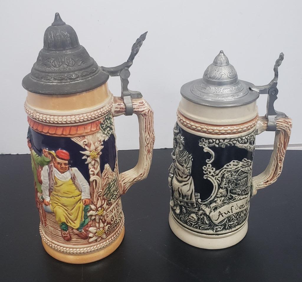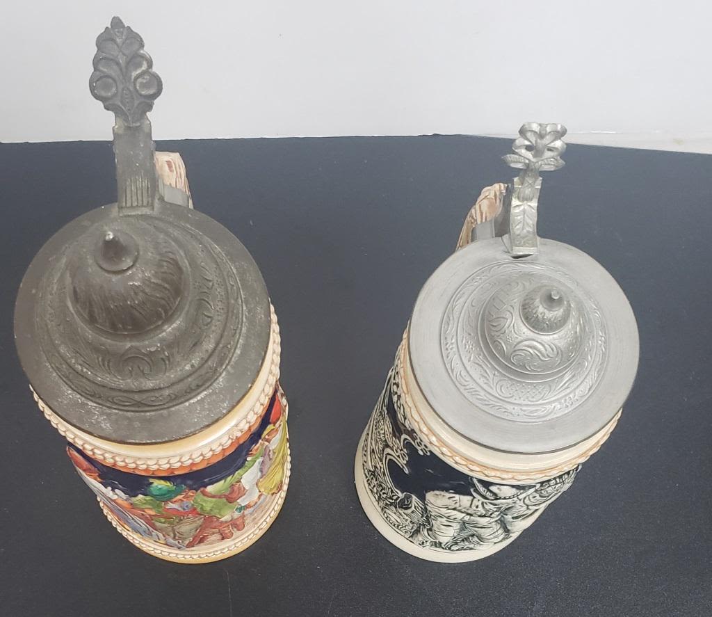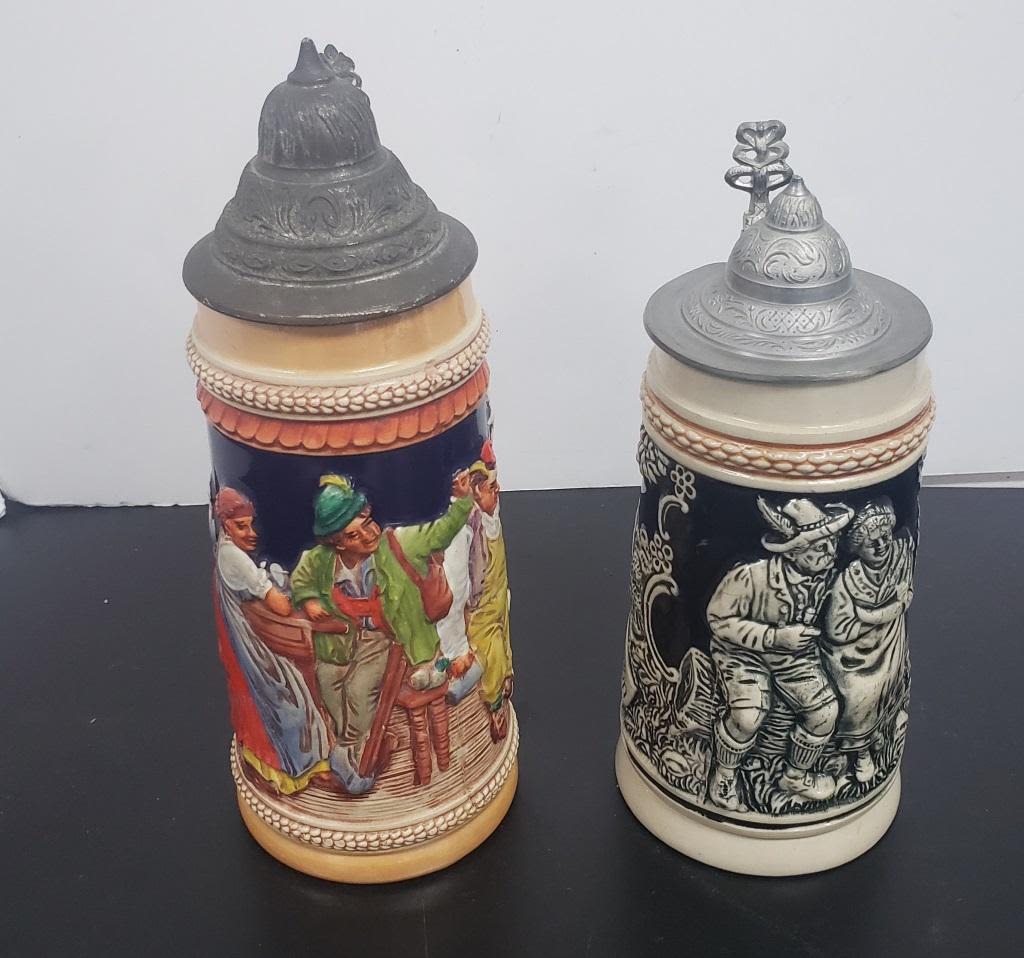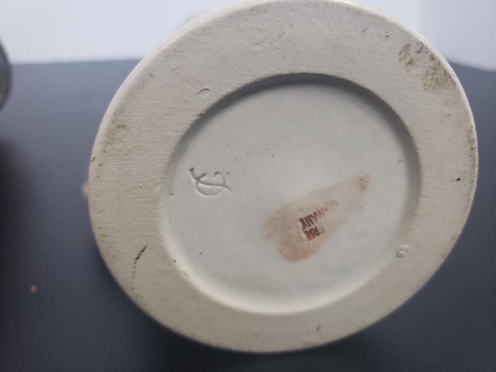 Larger one is 9.5" tall and has some crazing. Smaller is 8" tall and made in West Germany.