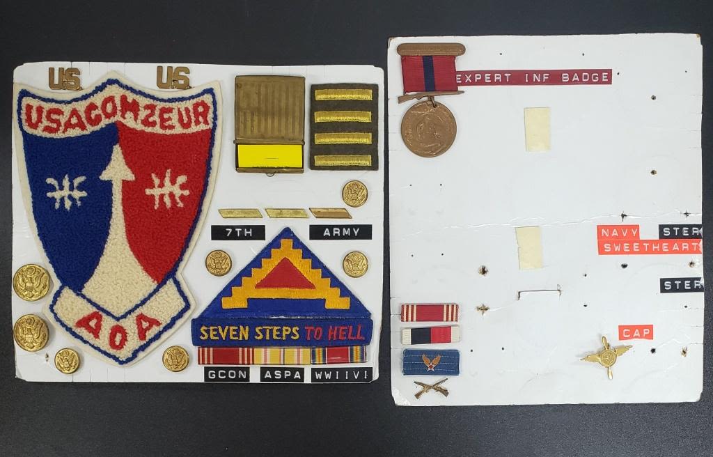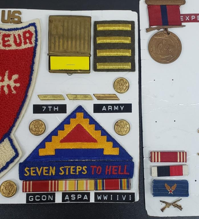 and MORE Some of the pieces are glued to the cardboard. USAAF items. Marine Corps Medal.