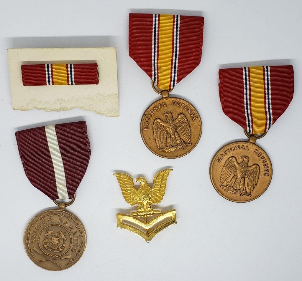 (1) with Bar – Military Eagle Rank Pin, US Coast Guard Good Conduct Medal "SEMPER PARATUS"