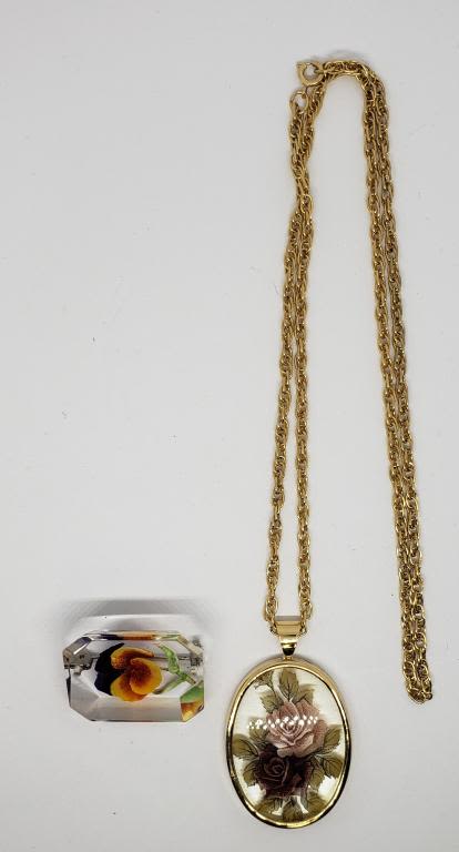 PLUSE CLEAR CRYSTAL AND FLOWER BROOCH