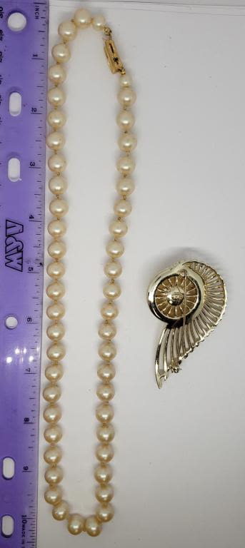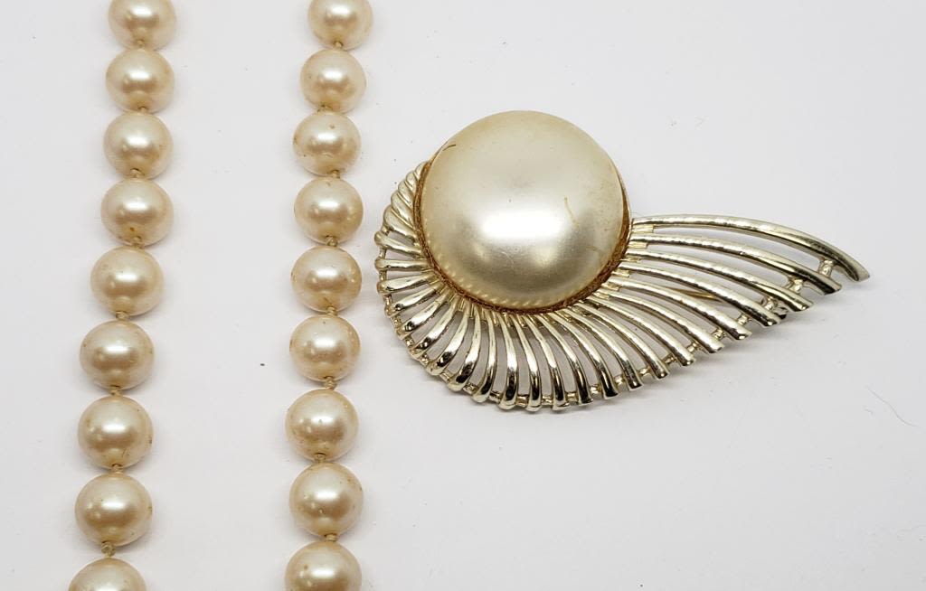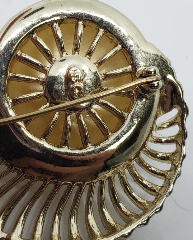 TONED BROOCH WITH OFF WHITE LUCITE ACCENT