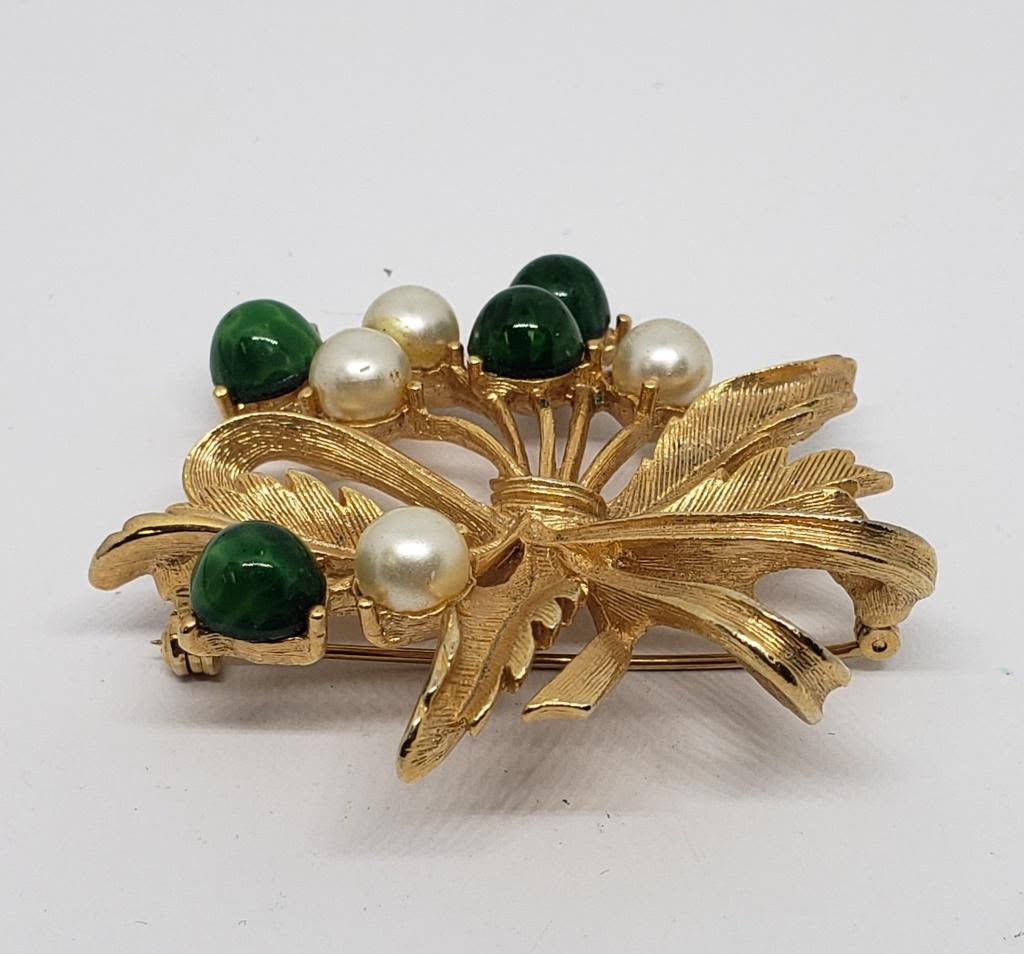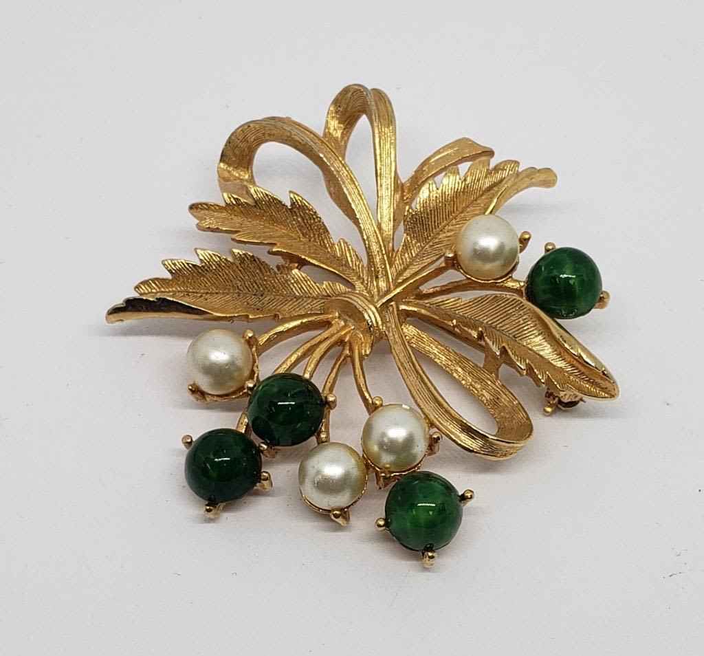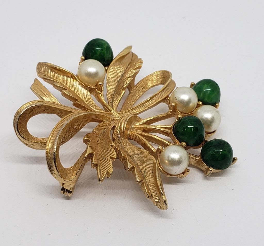 WITH FAUX PEARL AND GREEN BEADED ACCENTS