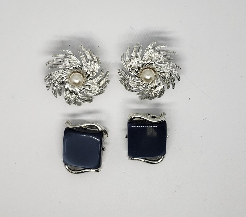 (1)SARAH COVENTRY WITH FAUX PEARLS & (1)CORO WITH NAVY SQUARW LUCITE CENTER