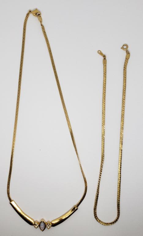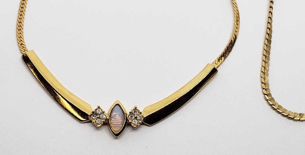 RHINESTONE AND MILKY PURPLE STONE PLUS (1)AVON GOLD TONED CHAIN