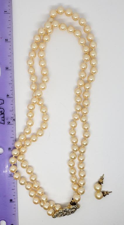 RHINESTONE CLOSURE PLUS MATCHING PAIR OF STUD EARRINGS