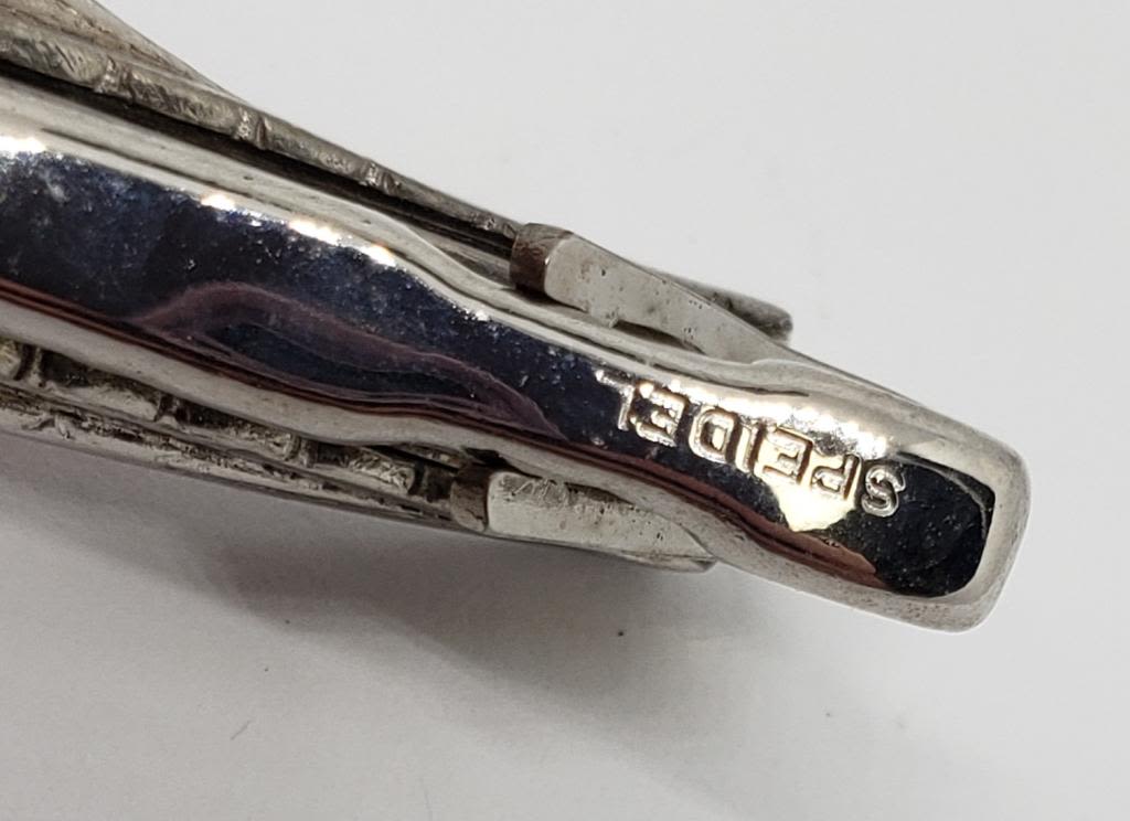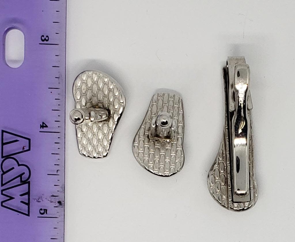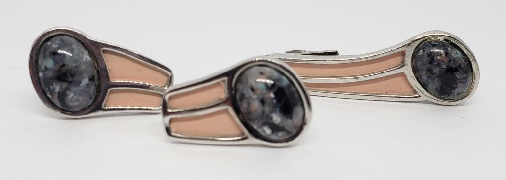 AND TIE CLASP-WITH BLUE MARBLE LUCITE AND PINK ENAMEL