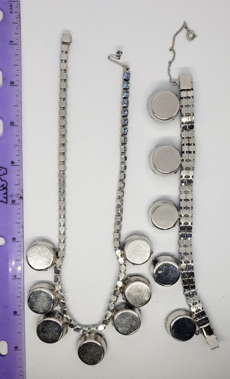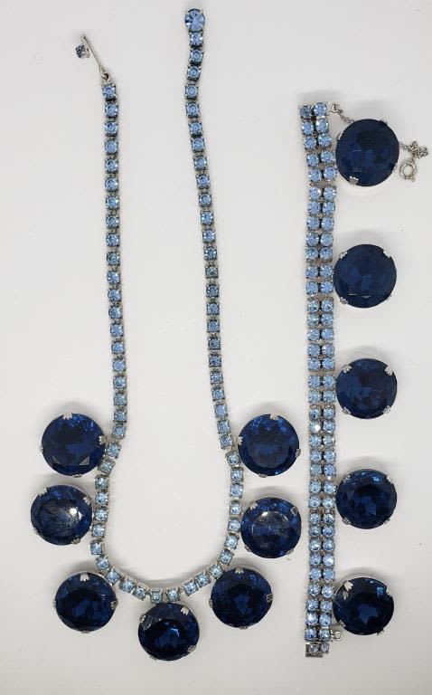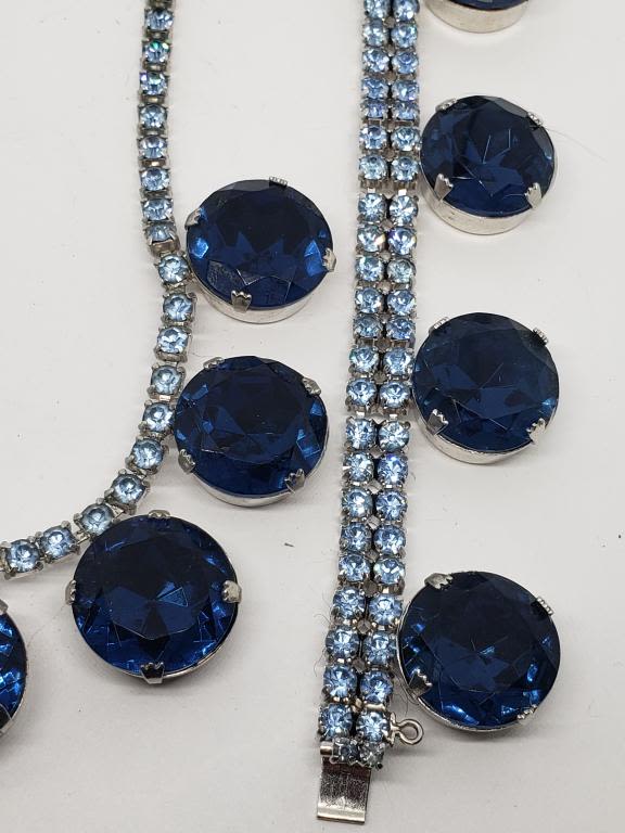 NECKLACE WITH LARGE NAVY BLUE RHINESTONE CHARMS PLUS MATCHING BRACELET