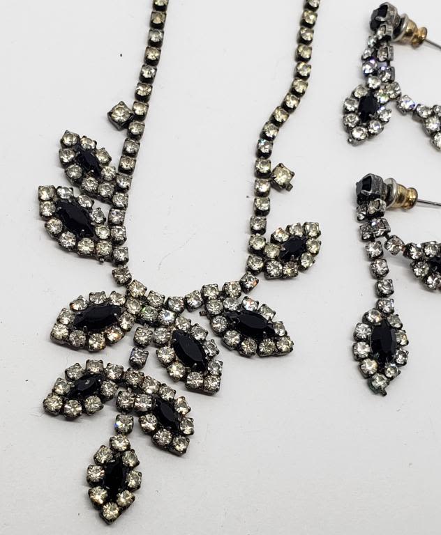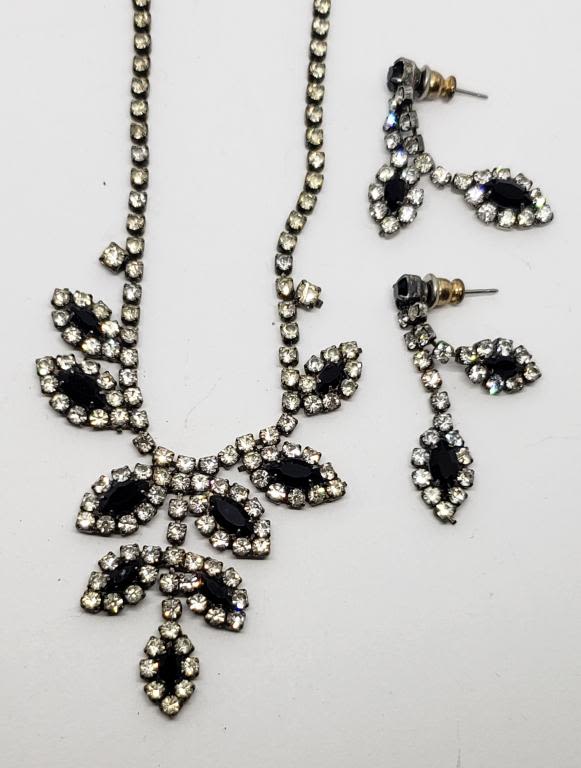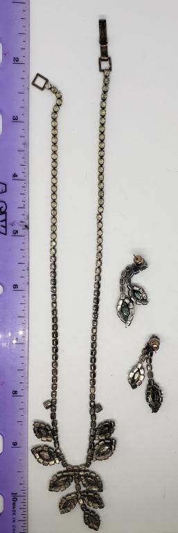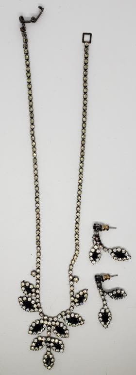 RHINESTONE NECKLACE WITH MATCHING PIERCED DANGLY EARRINGS