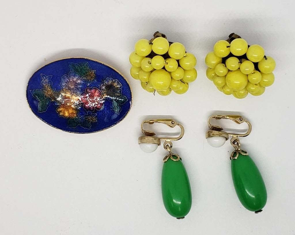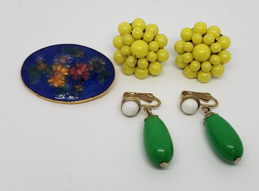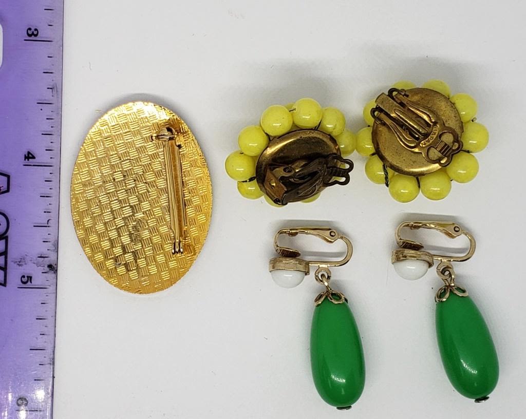 PLUSE (2)PAIRS OF CLIP ON EARRINGS ELECTRIC GREEN AND YELLOW ACCENTS