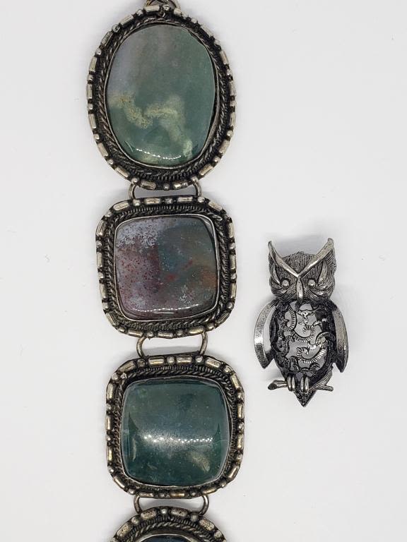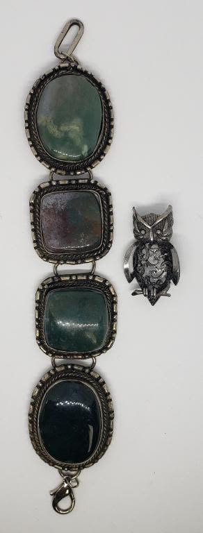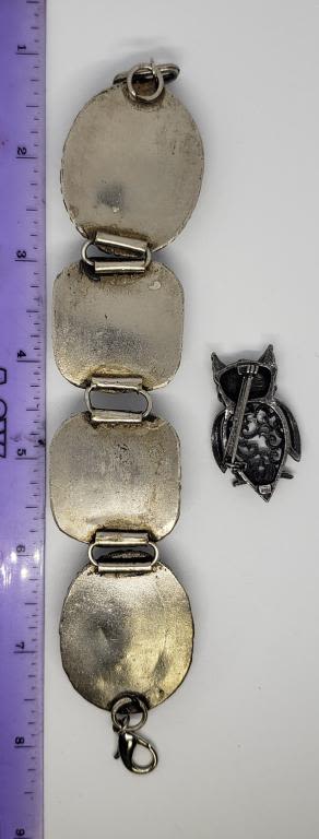 LUCITE PLUS SILVER TONED OWL BROOCH