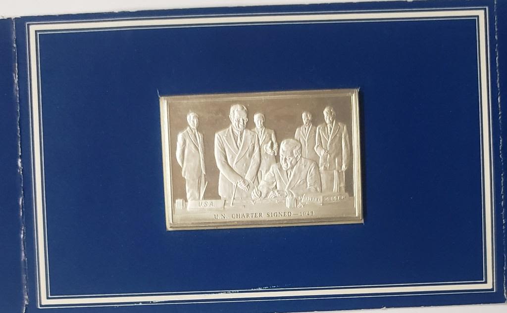750 GRAINS .925 STERLING – U.N. CHARTER SIGNED – IN ORIGINAL HOLDER