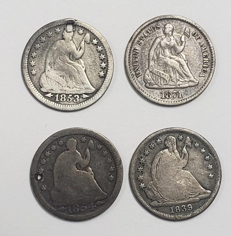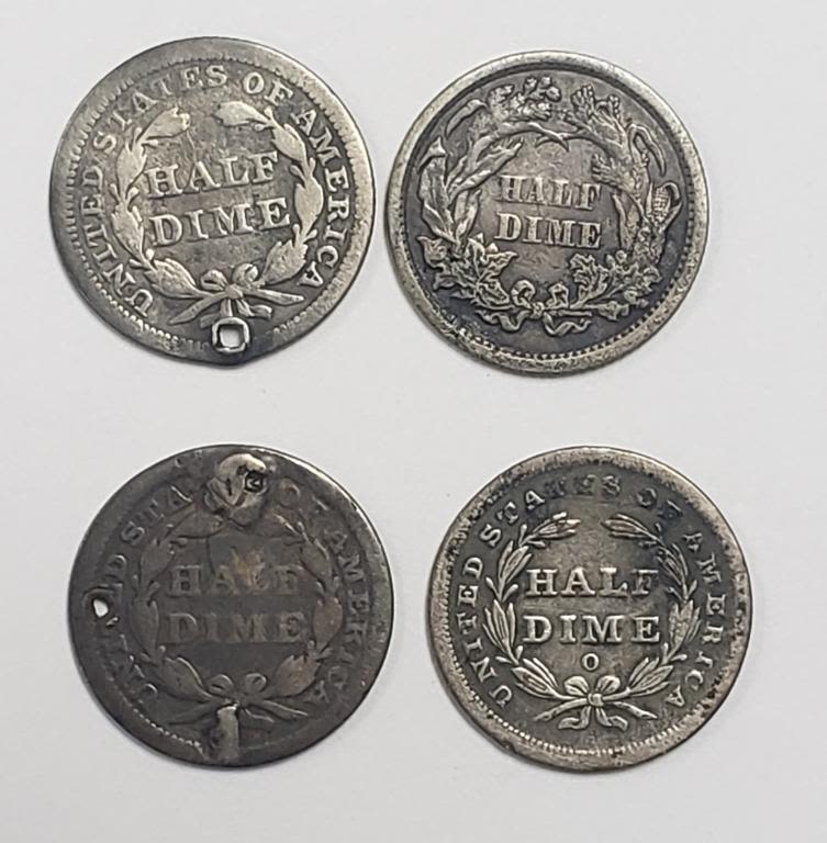 1839-O, 1853 & 1854 (holed), 1871 – CIRC or BETTER