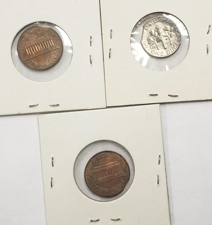 1965 & 1967 LINCOLN CENTS & 1966 ROOSEVELT DIME