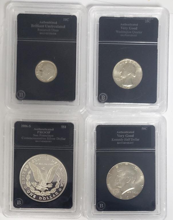1964 KENNEDY HALF, 1964 WASHINGTON QTR, 1963 ROOSEVELT DIME ALL in SEALED SLABS AUTHENTIC