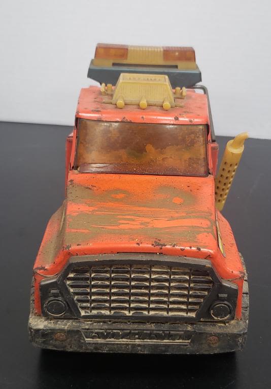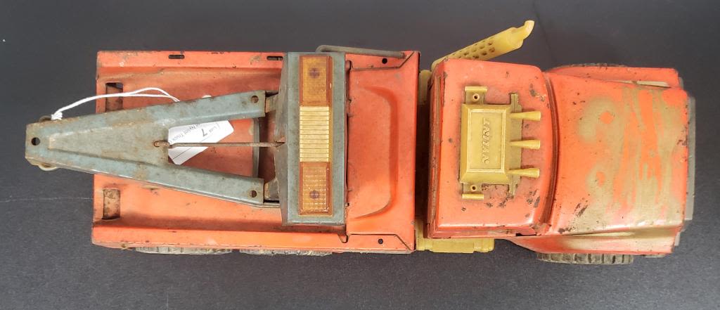 Needs a good cleaning. Has scrapes, scratches and chips in the finish. Some light rust. Lever to raise tow arm doesn’t work. About 15.5".