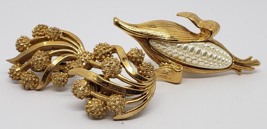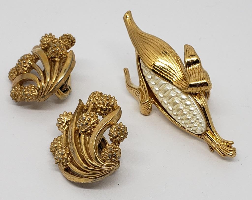 PLUS BONUS GOLD TONED CORN PIN WITH WHITE LUCITE CENTER