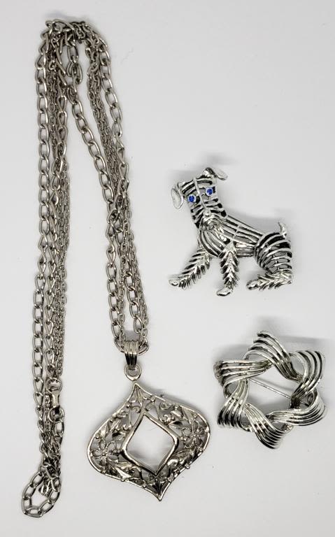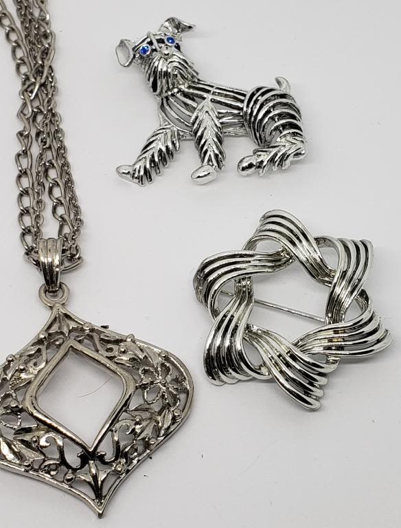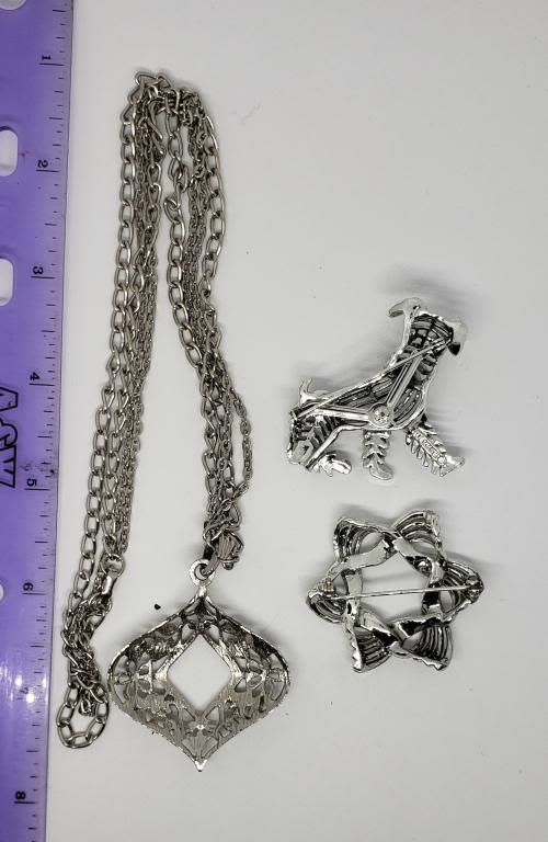STRANDED NECKLACE WITH FLOWER PENDANT (1)GERRYS SCOTTISH DOG WITH BLUE RHINESTONE EYES BROOCH (1)STAR BROOCH