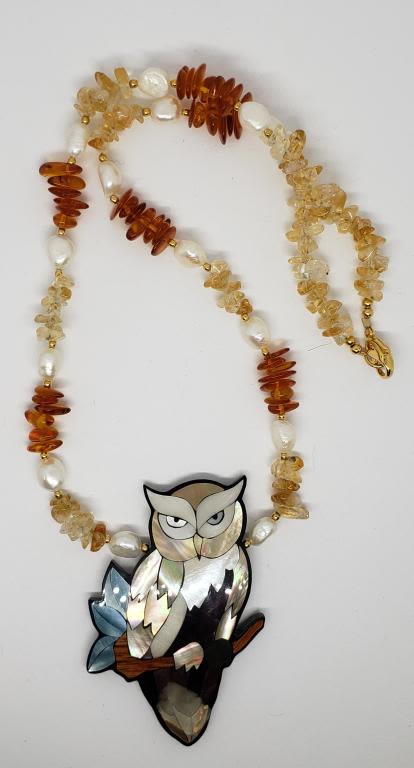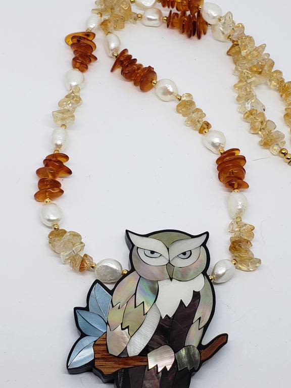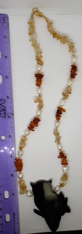 WITH CULTURED PEARL AND AMBER STONE CHAIN